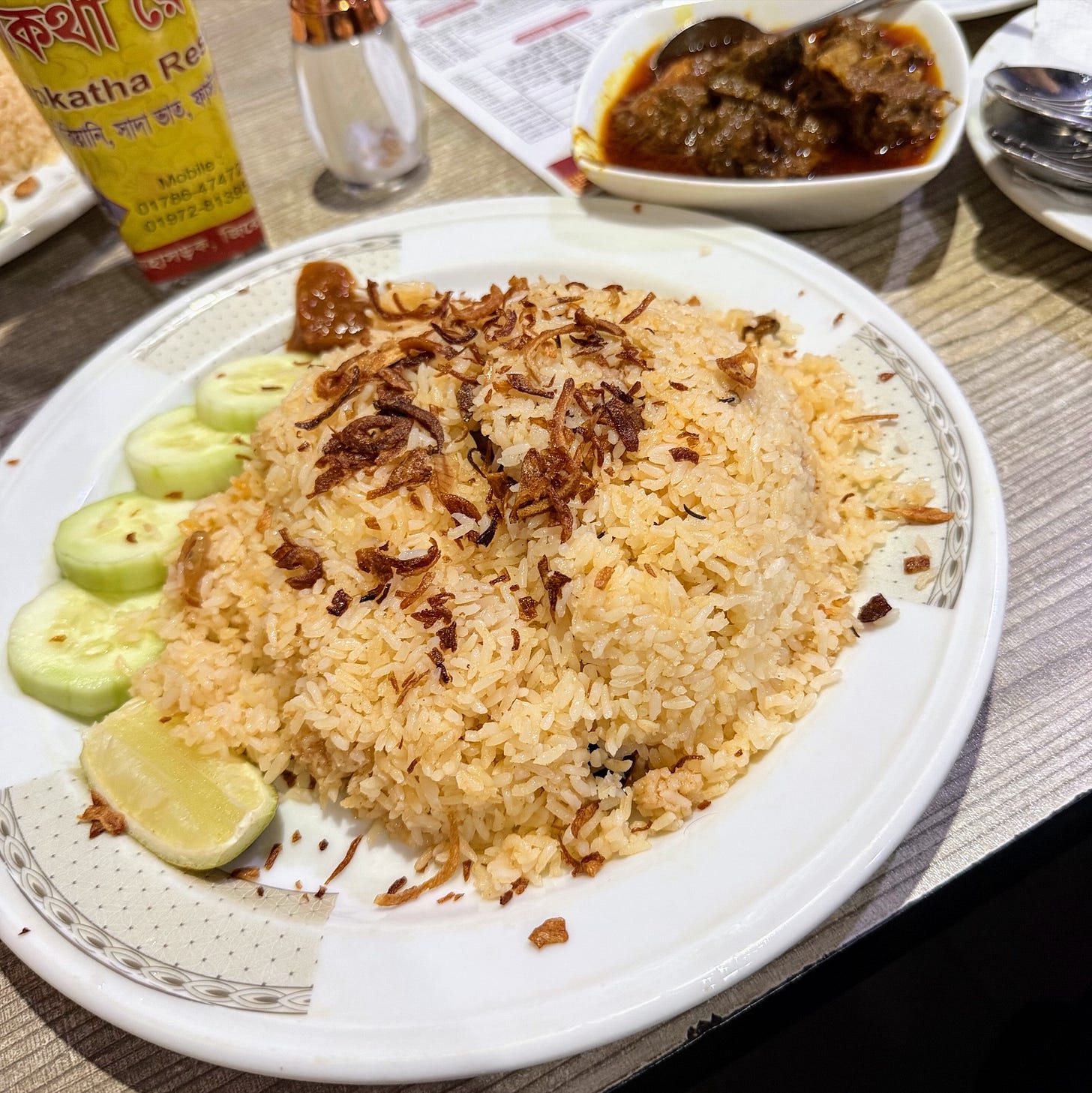 Otherwise, if I was eating Bengali food, it was a mutton biryani, usually.