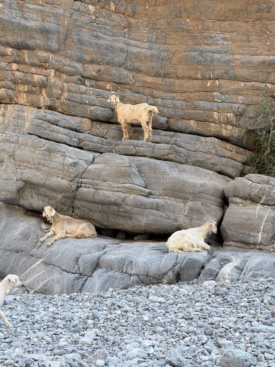 I didn’t go as far as I wanted—my rental wasn’t built for it, and after the wheels spun out twice in soft sand, I decided not to test my luck. But I drove far enough to feel the canyon walls closing in on either side, far enough to be alone with the goats and the silence and the realization that in Oman, you don’t need to be particularly adventurous to find yourself somewhere that feels out of the way.